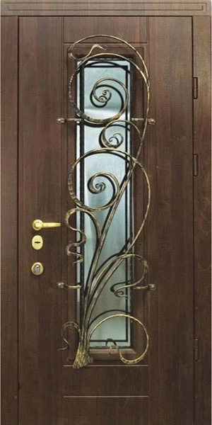 Красивый внешний вид немаловажное, но не самое главное преимущество металлических дверей с элементами ковки. Такие двери еще и очень надежны. Они изготавливаются из холоднокатаной стали толщиной 1,4-2 мм, отделываются массивом, корабельной фанерой, натуральным шпоном или МДФ-панелями, покрытыми виноритом. Установив на нее замки 3 или 4 класса взломостойкости, вы получите дверь, вскрыть которую с помощью грубой силы практически невозможно.