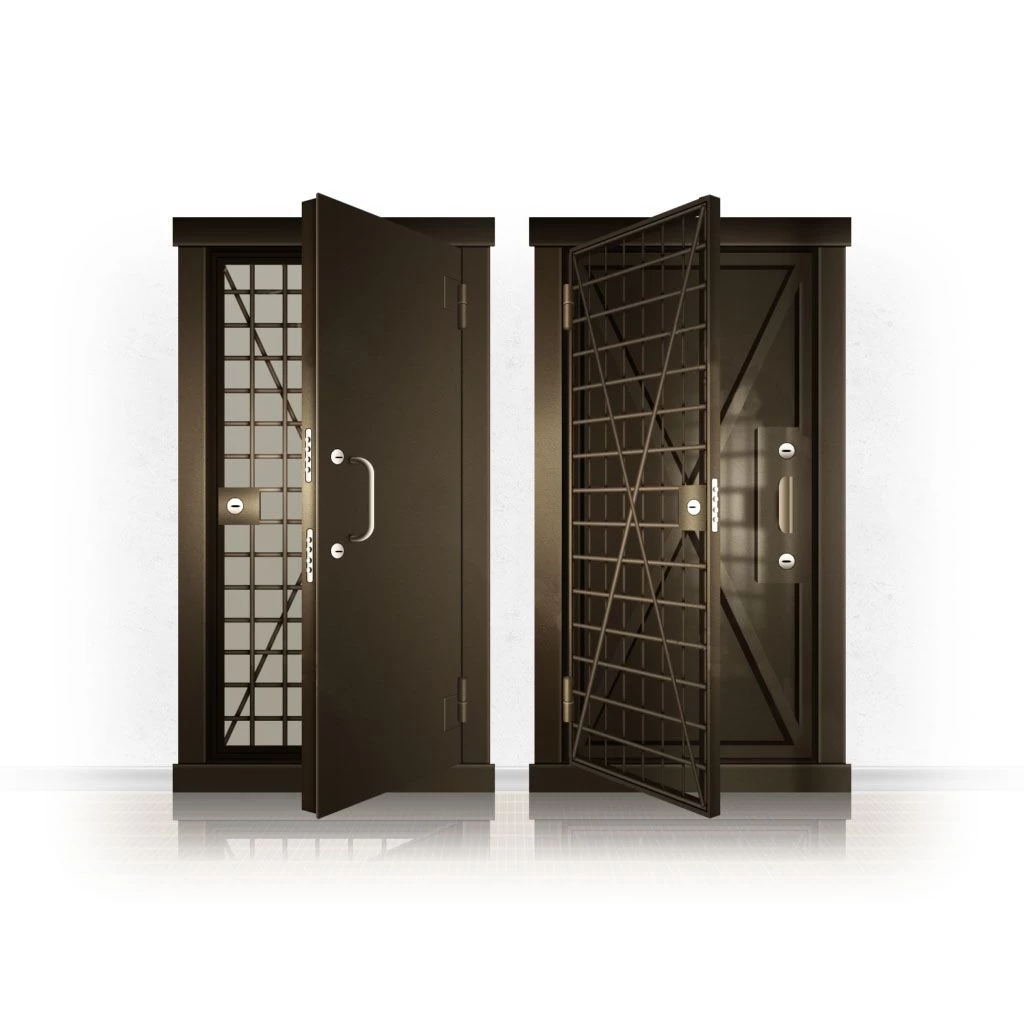 Металлические двери КХО и КХН представляют собой входные блоки, обладающие высоким уровнем взломостойкости и состоят из трех основных элементов: усиленного каркаса, сплошного металлического полотна и решетчатой двери. Дверной блок изготавливается из стального уголка 100*100 мм. Места крепления блока к стене цементируются и закрываются стальными наличниками шириной 40 мм. Крепеж заходит вглубь стены на 80 мм. В конструкции внешней створки монтируются ребра жесткости, для обшивки используется сталь толщиной не менее 3 мм. Внутренняя решетка изготавливается из прутка диаметром 16 мм. Размер ячеек решетки должен составлять не более 15 на 15 см. В точках пересечения прутья надежно приваривают друг к другу. В КХО и КХН необходимо поддерживать определенную температуру и влажность. Для этого внутреннее пространство глухой двери заполняется теплоизоляционным материалом, а по периметру двери приклеивается уплотнитель. Такие двери оборудуются замками с повышенным уровнем взломостойкости. Специализированные двери КХО и КХН в Калачинске могут быть оснащены сигнализацией, в конструкции могут быть проушины для навесного замка и элементами для опечатывания. Если идет речь о двери в комнату хранения оружия, в створке оборудуется окно для выдачи оружия и спец. средств, которое накрывается стальной дверцей.